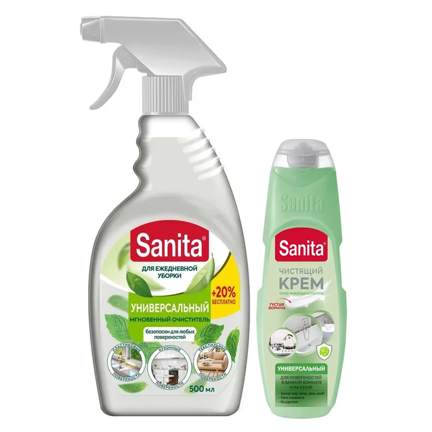 Набор спрей Sanita д/поверхностей и текстиля, 500мл+ЧС универ Sanita крем Универсал 300г, 29873