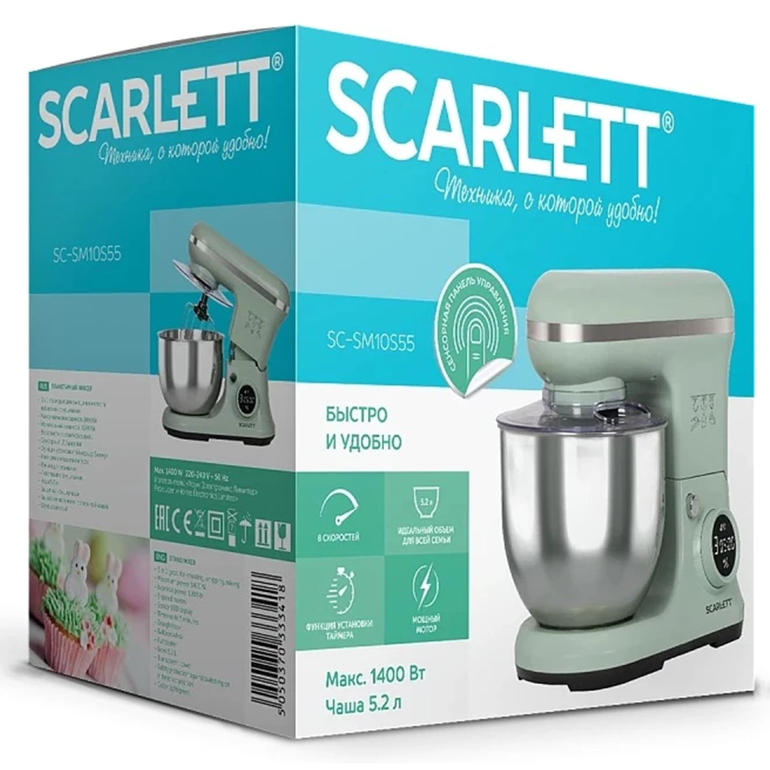 Миксер планетарный SC-SM10S55, 1400Вт, салатовый