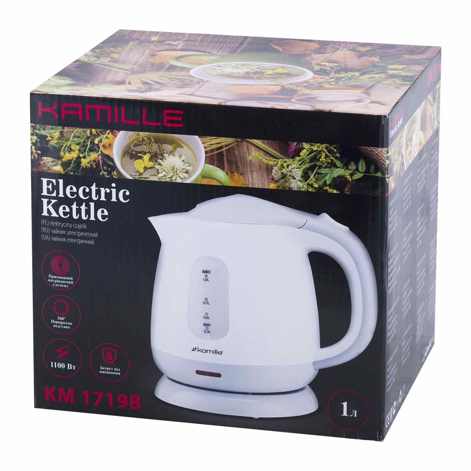 -Эл.чайник 1л пластик белый-серый 1719В