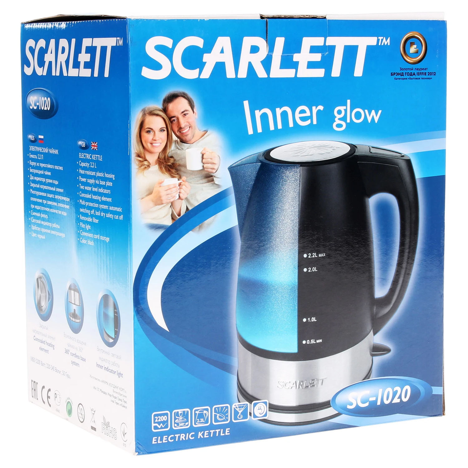 Чайник эл. SC-1020, 2200Вт, 2,2л, черный