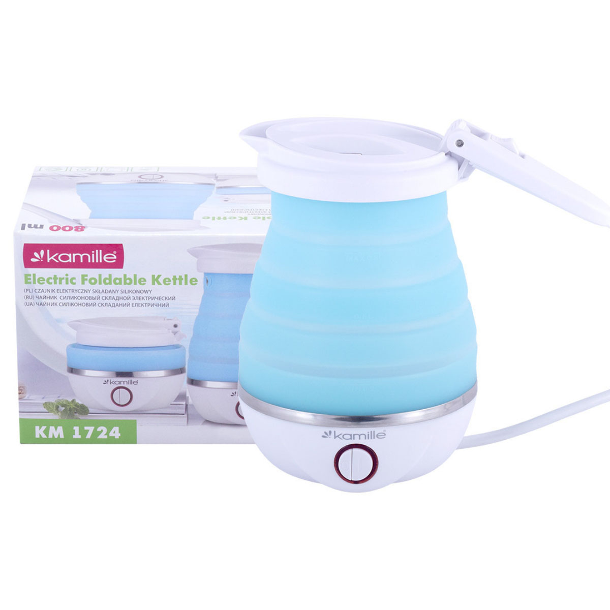 Эл.чайник силиконовый 0,8л 750 Вт 1724 голубой с белым
