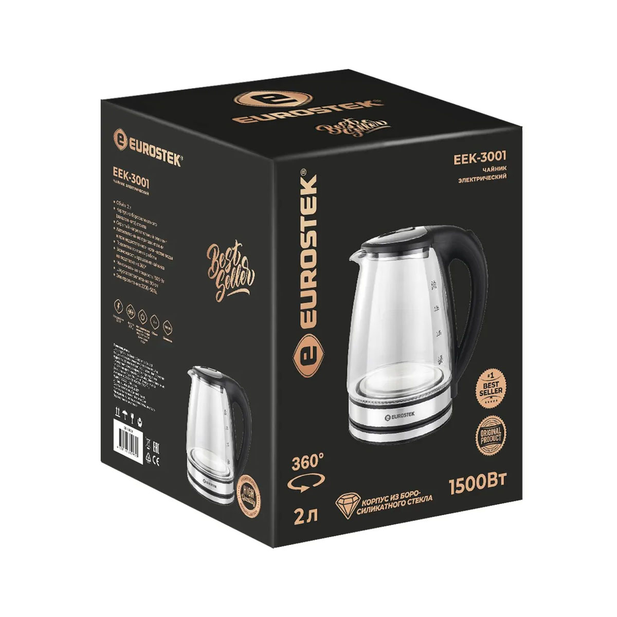 Чайник эл. Eurostek EEK-3001, 1,8л, 1500Вт, стекло