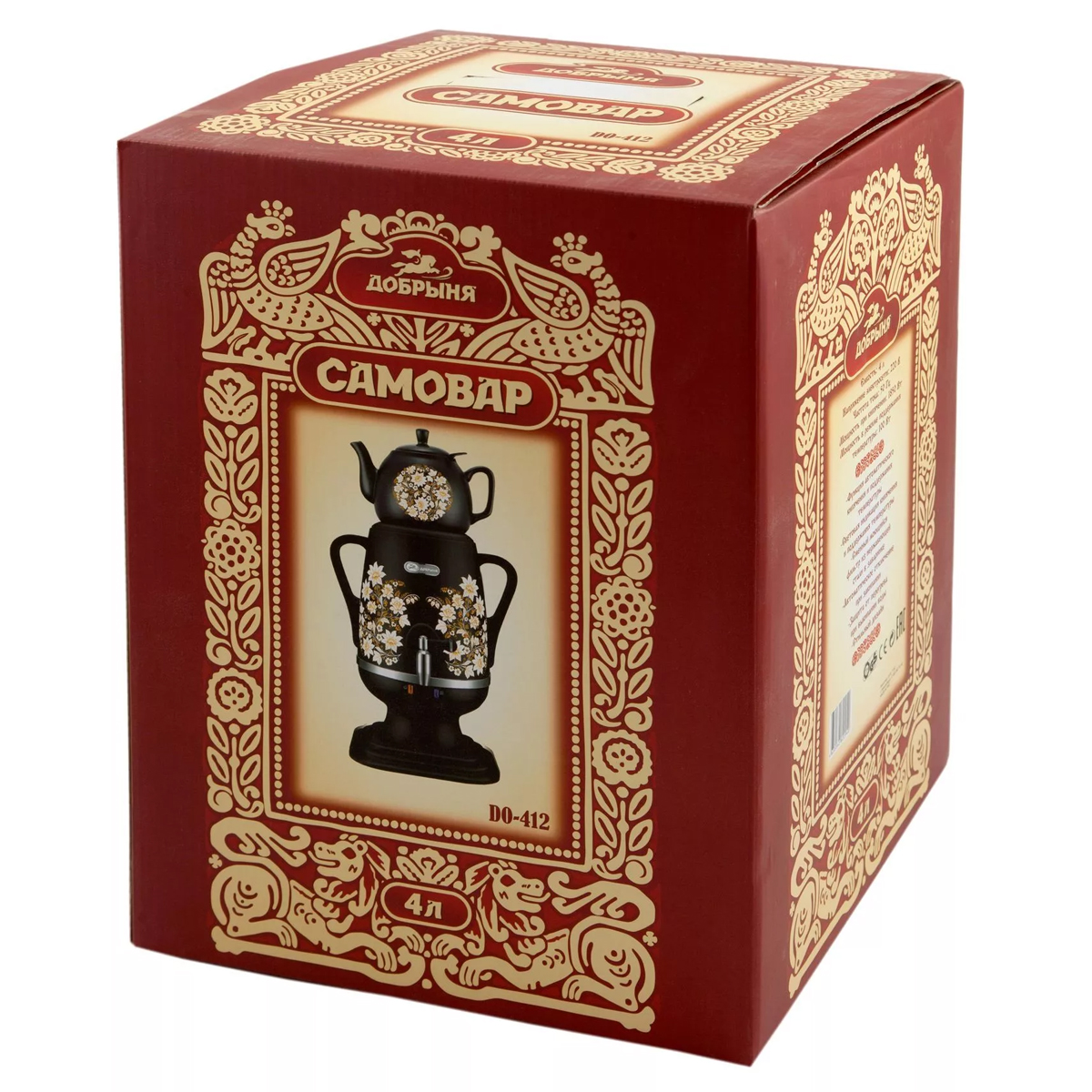 Самовар DO-412 4л, + зав. чайник 1 л из н.стали, черный Добрыня