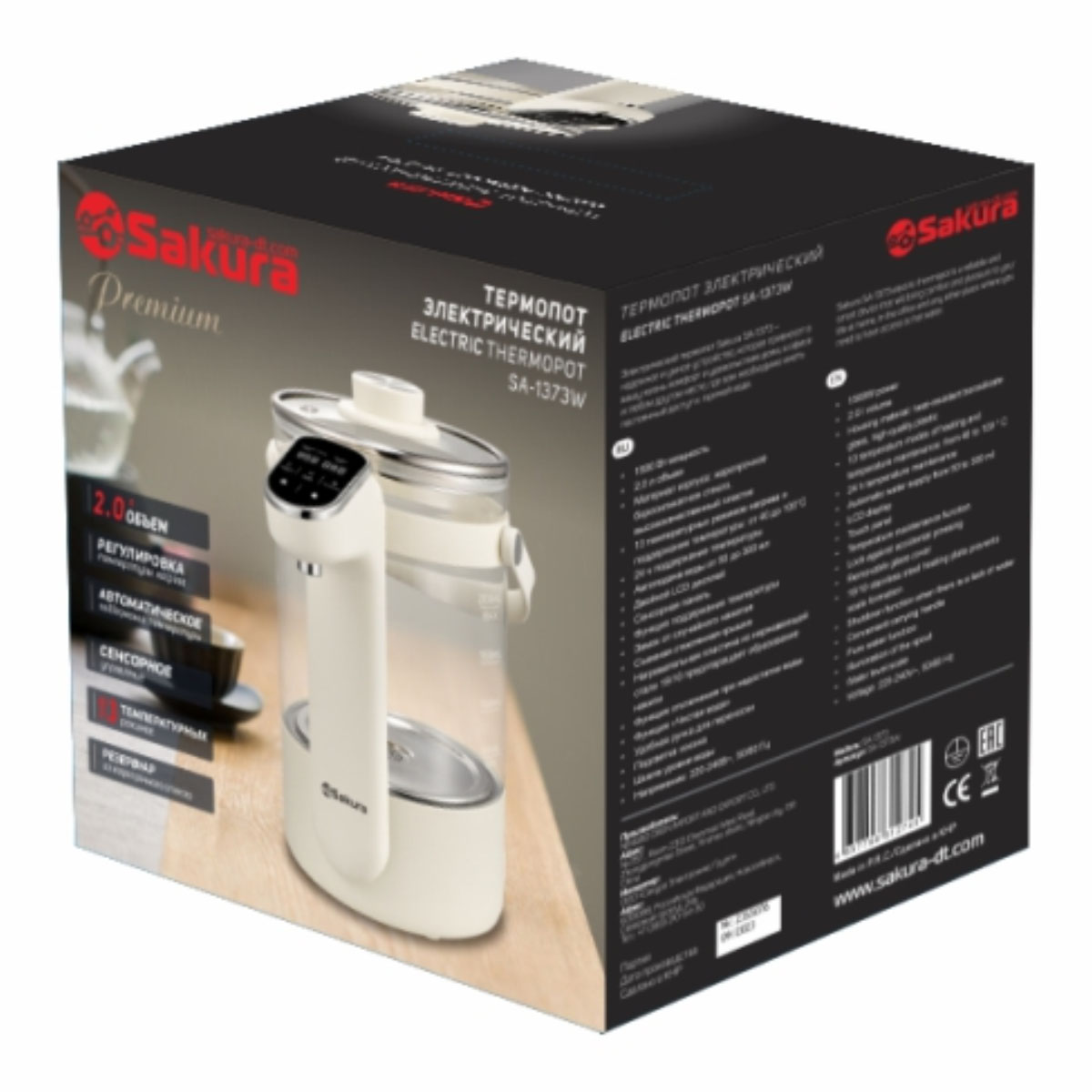 Термопот SA-1373W Premium 2л стекл. LCD сенсор 13темп замок автоподача 50-300мл