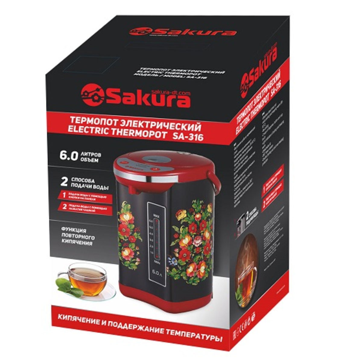 Термопот SA-316BRF 6л метал/черн