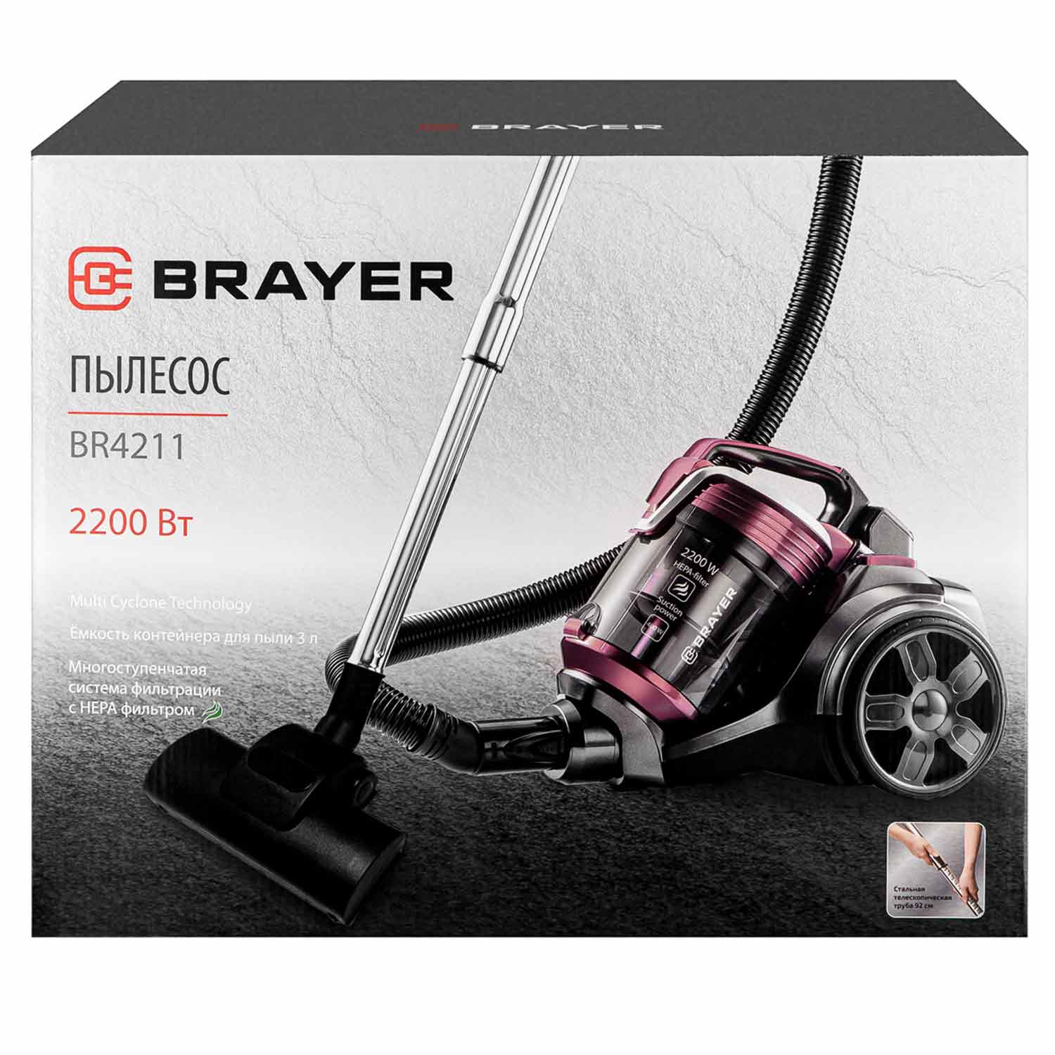 Пылесос BR4211 2200Вт, циклон, 3л, всасыв.400Вт BRAYER