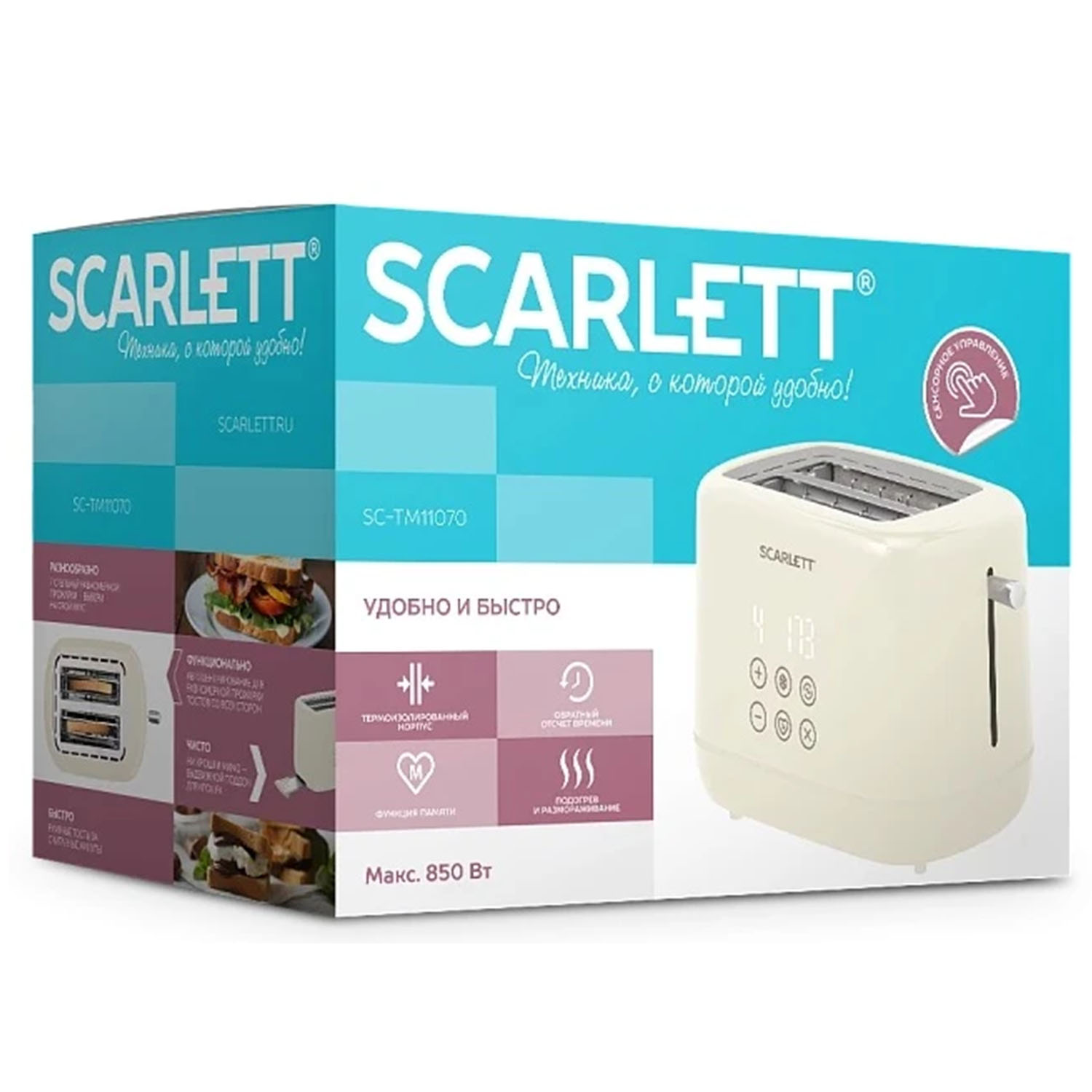 -Тостер на 2 ломтика SC-TM11070, 850Вт, бежевый