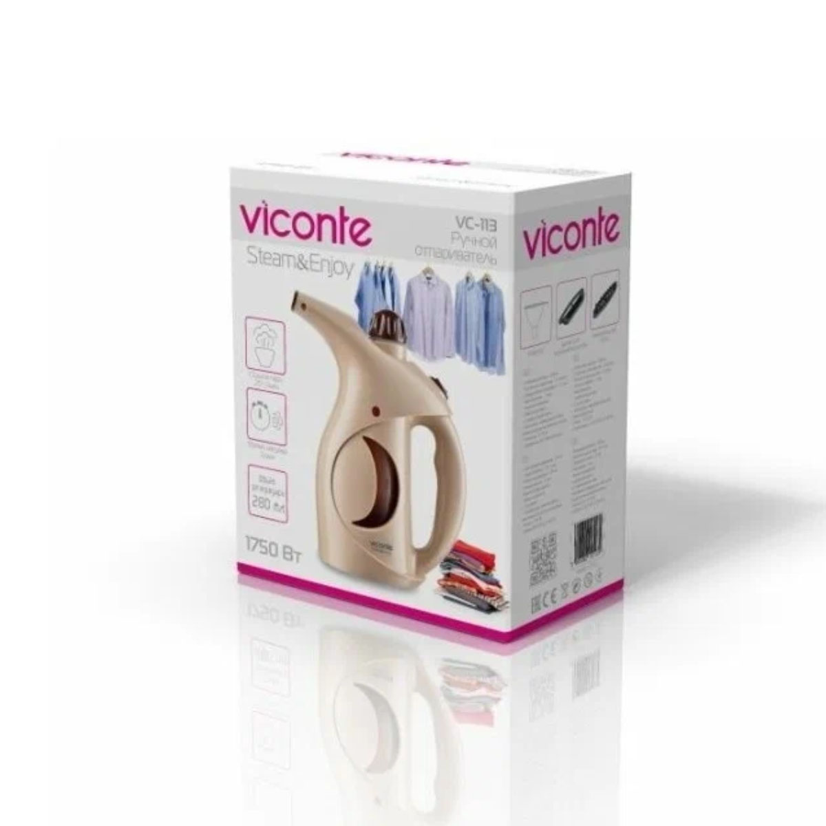 Отпариватель эл. VICONTE VC-113, мощность 1750 W, объем - 280 мл, непрерывная подача пара - 15 минут