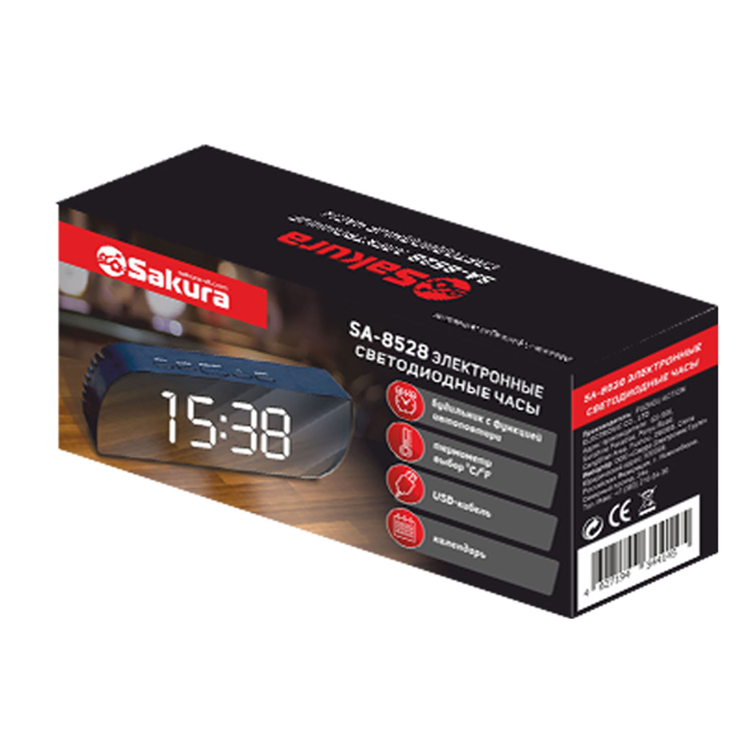 -Часы электронные SA-8528 светодиод,зерк.дисплей,будильник
