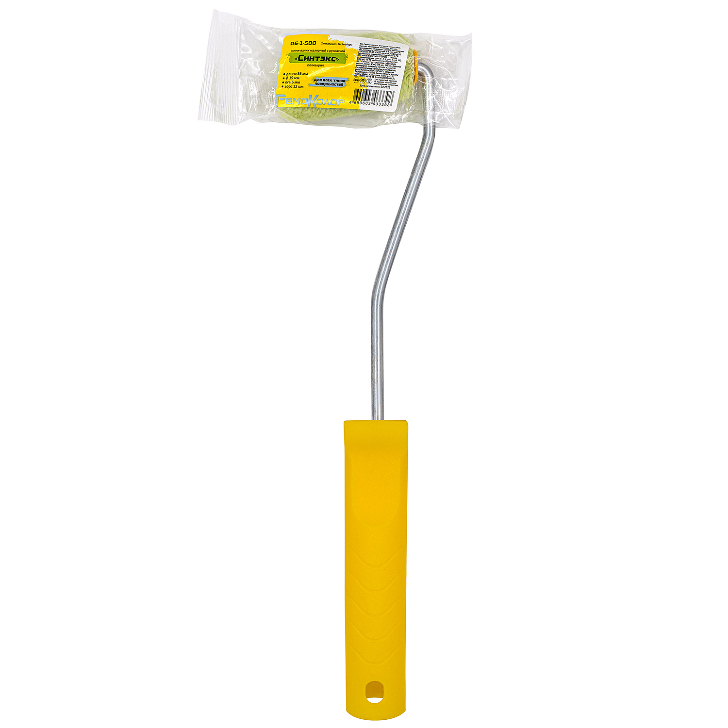 -Мини-валик малярный с рукояткой 06-1-500 "Синтэкс" ось 6мм d15мм 55мм