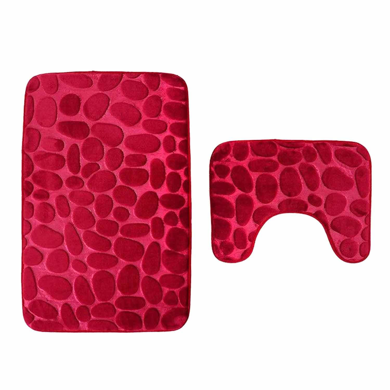 Набор ковриков для ванной и туалета 2шт HTPOLK10 камни 50*80/50*40см, полиэстер, красный