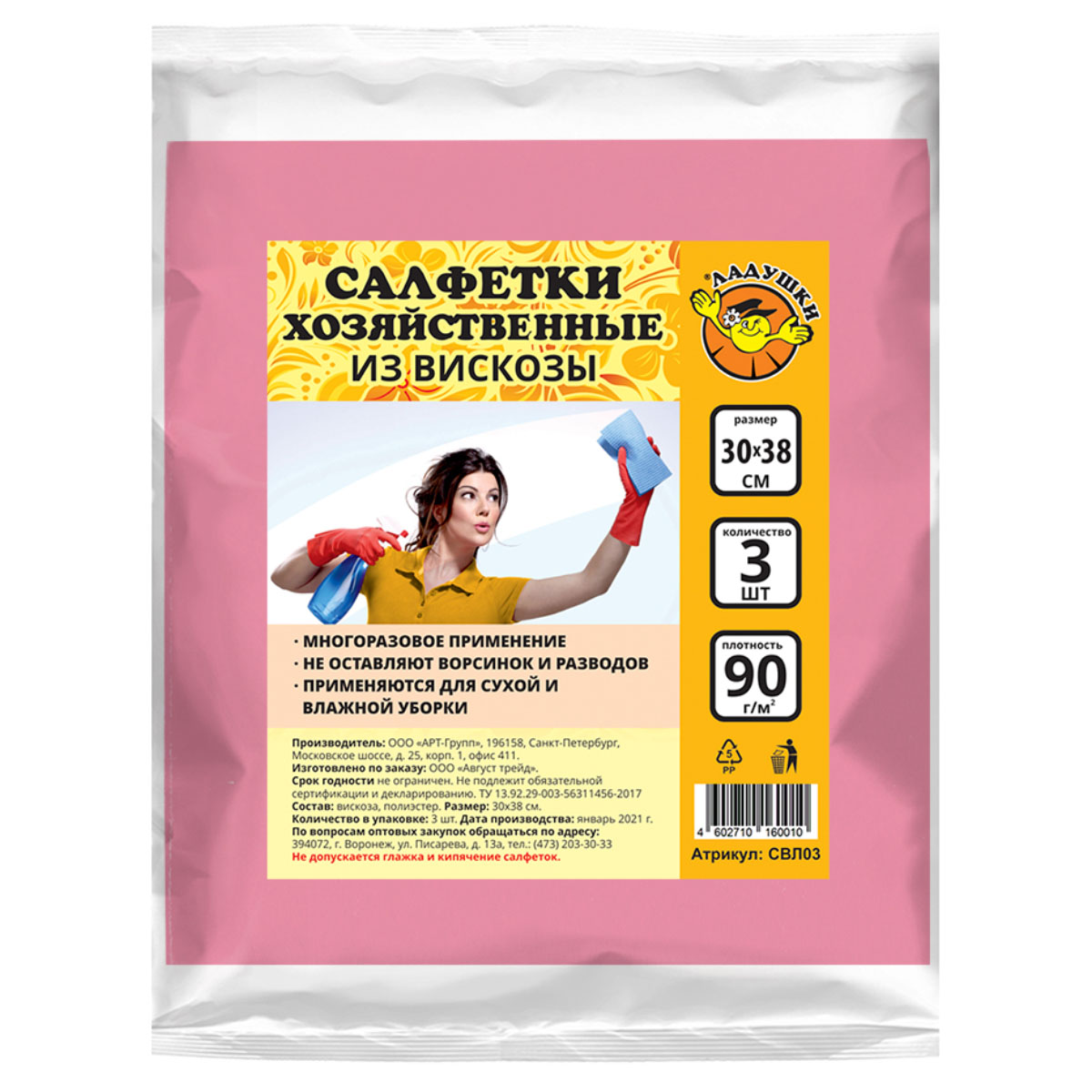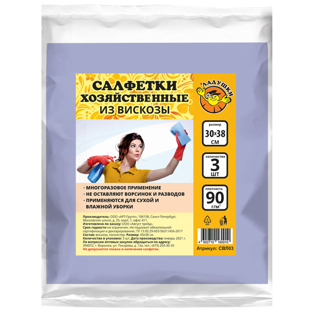 Купить Салфетка вискоза Ладушки 3шт 30*38см 72018/СВЛ03/7008, а также приобрести другие хозяйственные товары для дома или дачи в нашем интернет-магазине vdd36.ru по низким ценам и вы сможете с удобной доставкой или бесплатным самовывозом из любого розничного магазина «Всё для дома» в Воронеже, Новой Усмани, Семилуках