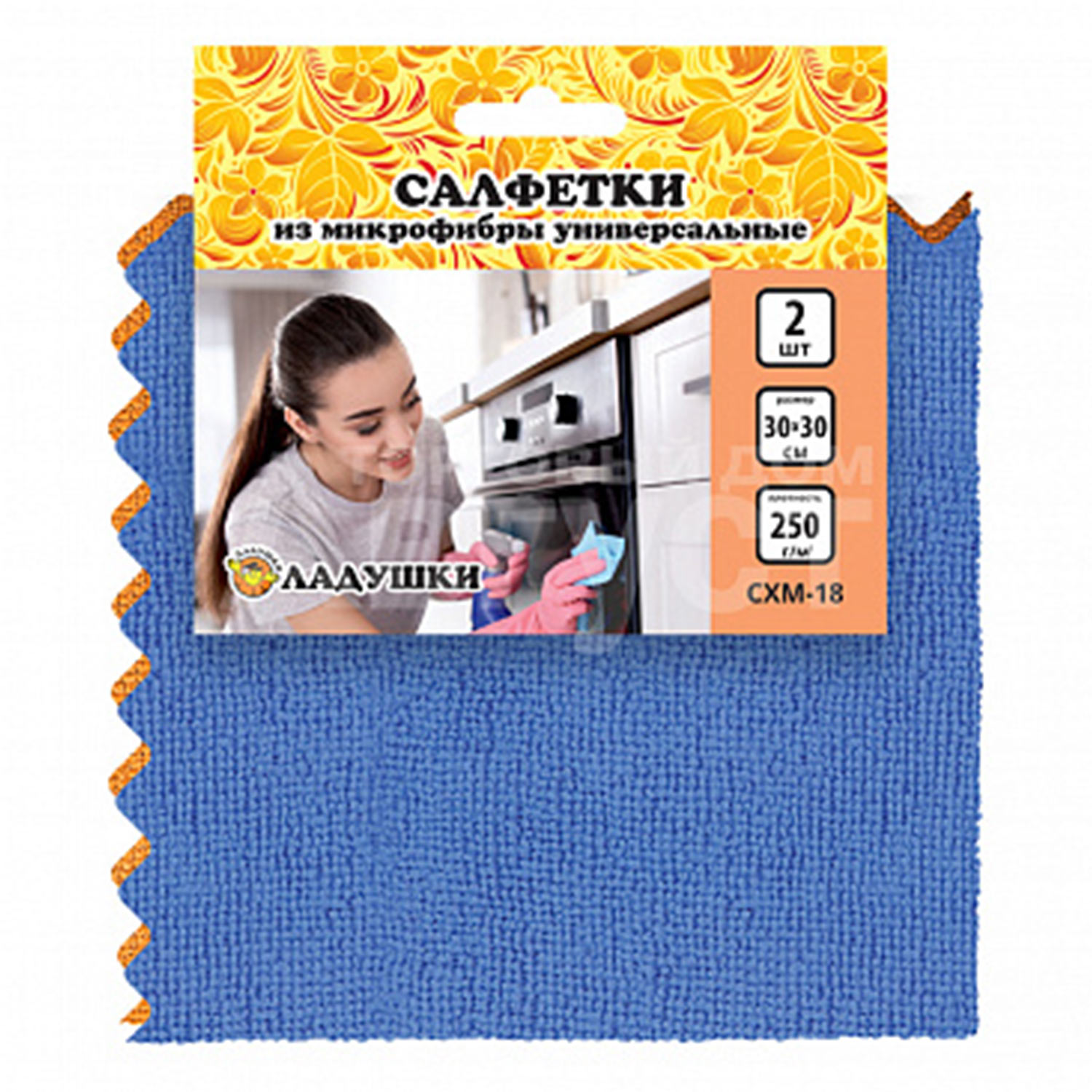 Салфетка хоз. Ладушки СХМ-08 для стекол и зеркал 30*30см микрофибра 49338