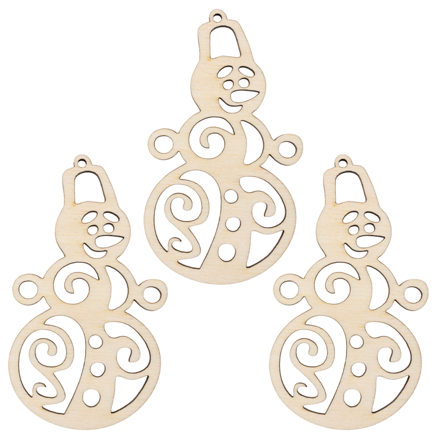 Набор ёлочных игрушек 3 шт, "Снеговик" , дерево 6*10,5