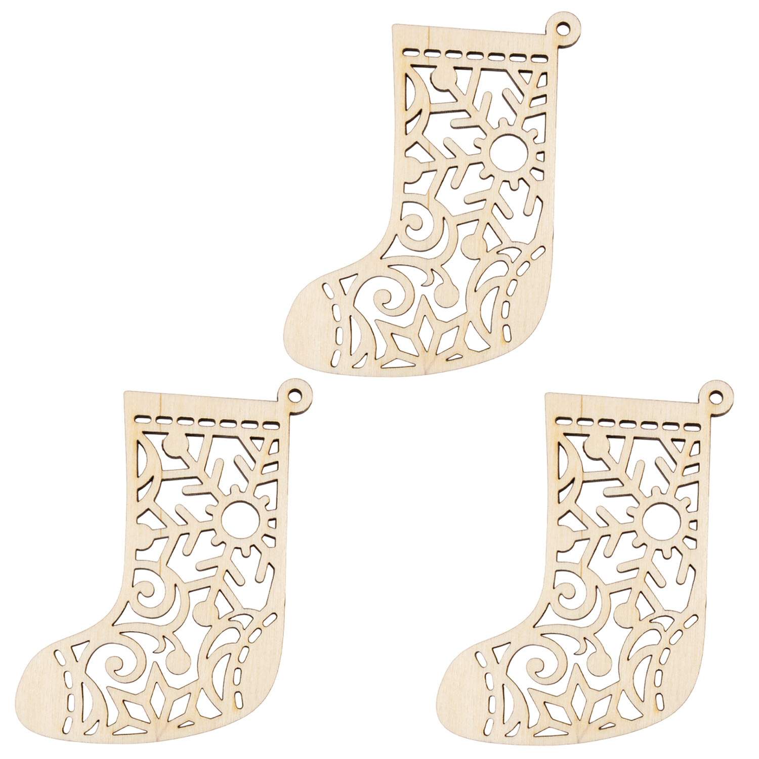 Набор ёлочных игрушек 3 шт, "Валенок" , дерево 8,5*10,5