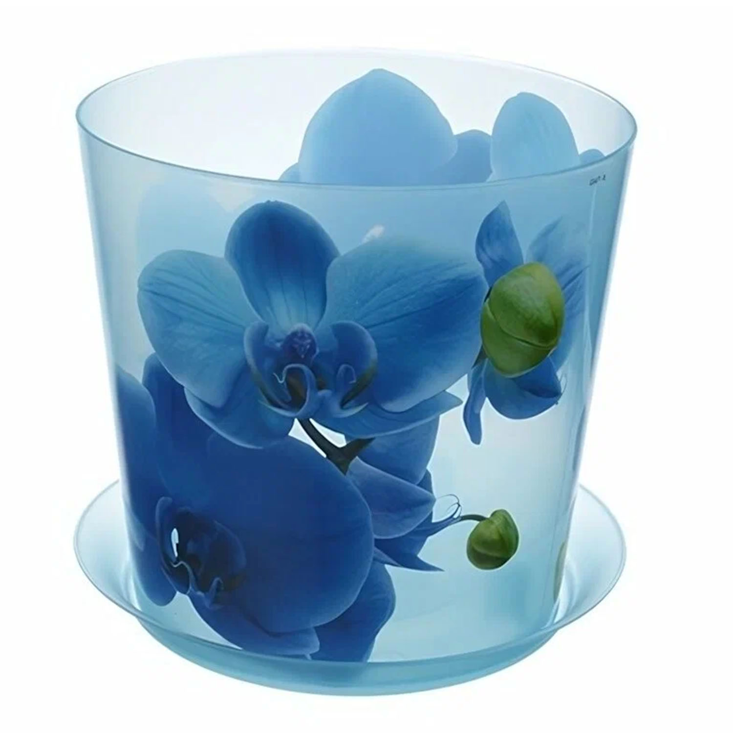 Кашпо М3105 "Деко" d=125мм, 1,2л с/под. Орхидея голубая пласт.     48