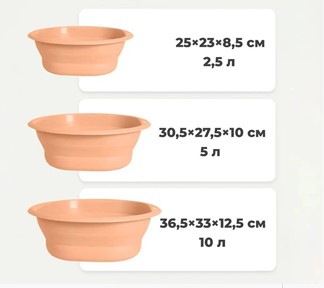 -Набор тазов 3шт (2,5;5;10л) складные оранжевые