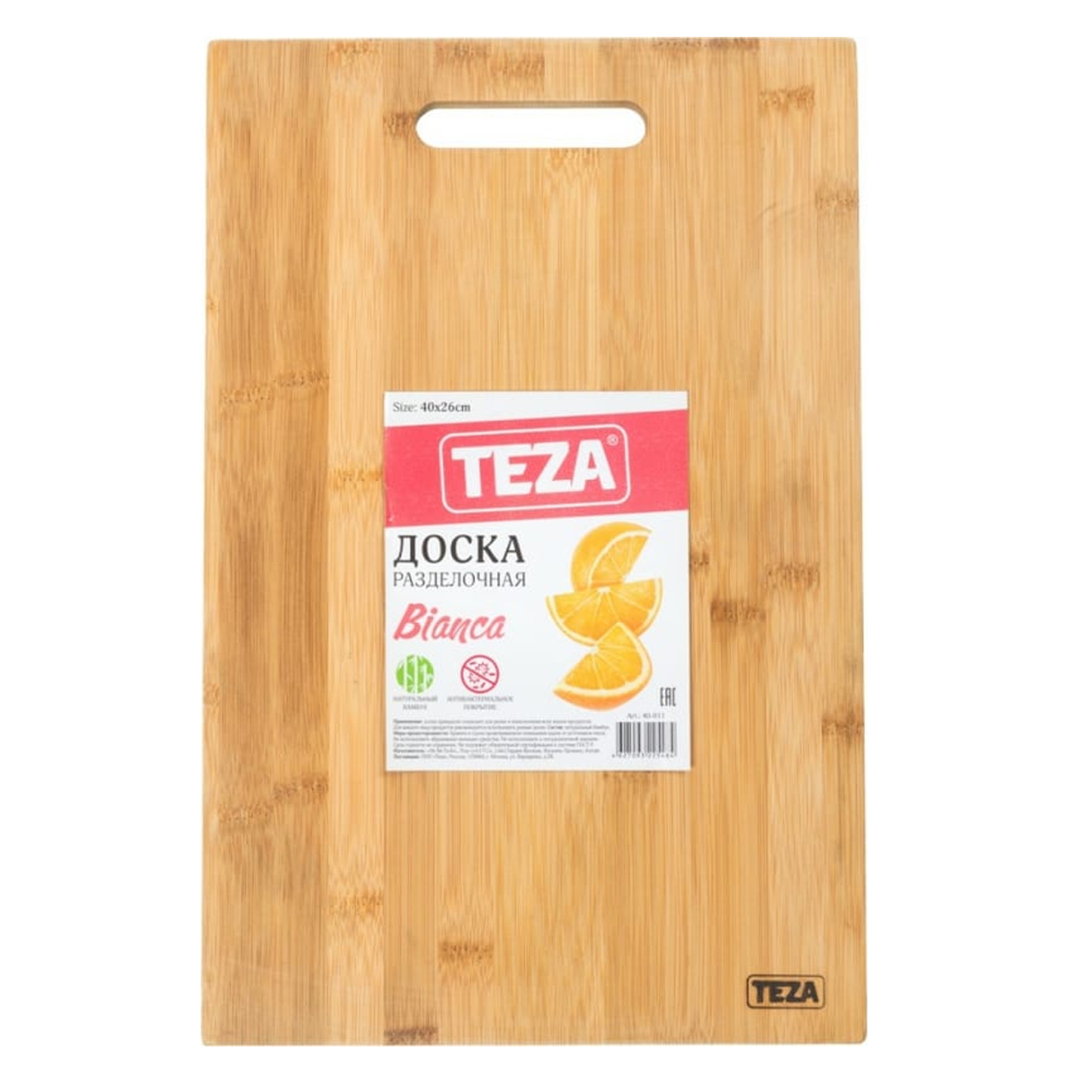 Доска разд Bianca 40*26*1,5см с прямоуг.ручкой бамбук 40-011