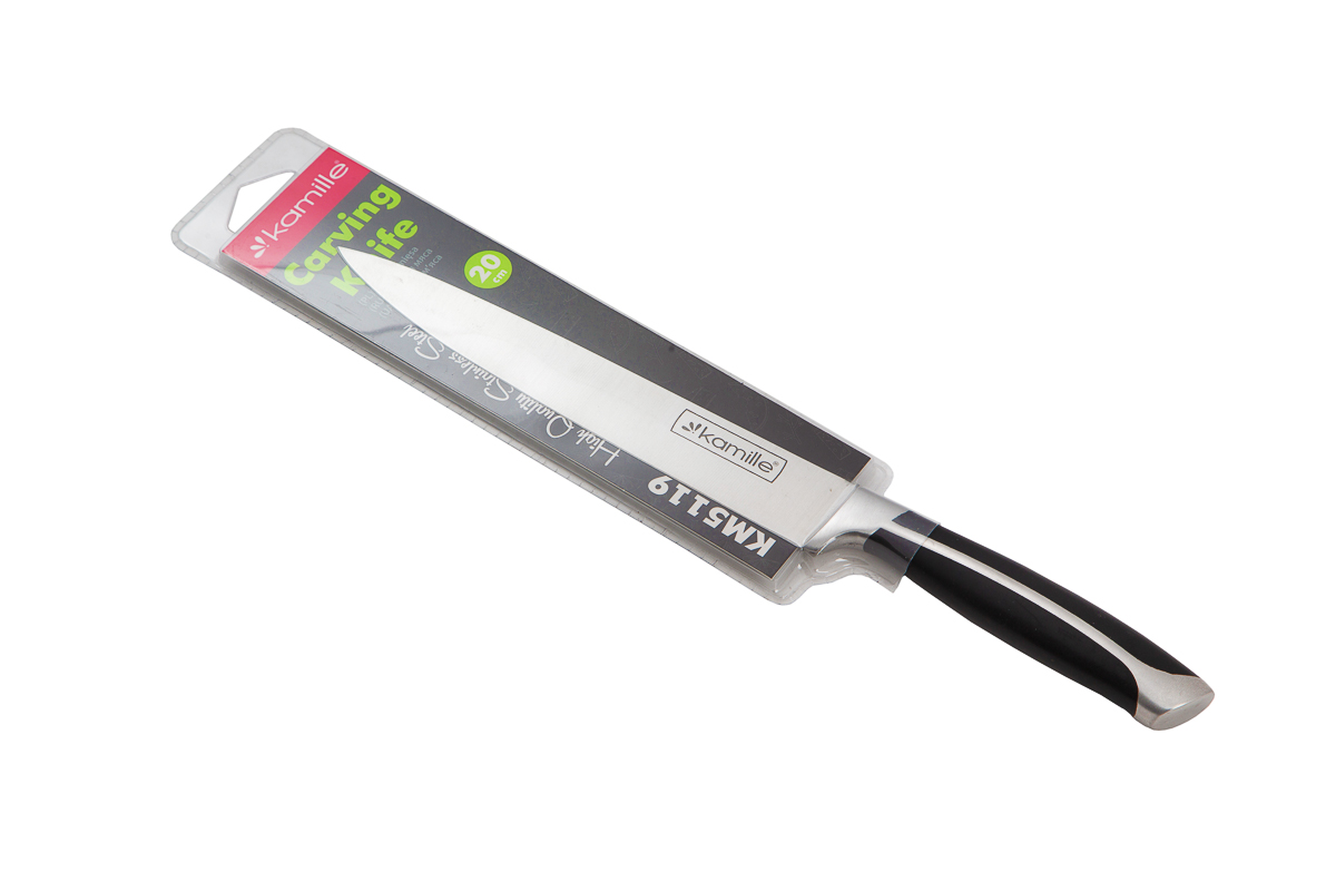 Нож Kamille 5119,для мяса. Материал лезвия: нержавеющая сталь. Длина лезвия: 20см. Заточка лезвия: односторонняя. Материал рукоятки: ABS-пластик. Длина рукоятки: 13см.