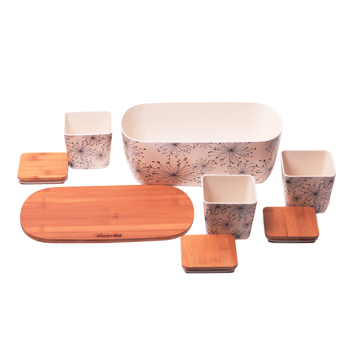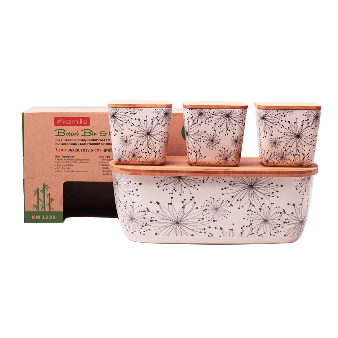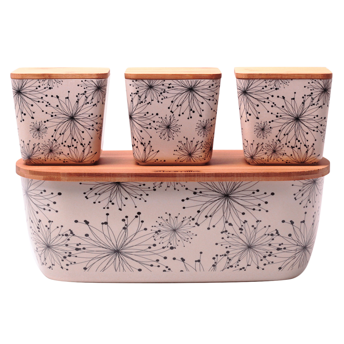 Хлебница 1131 36*20,2*13,5см из бамб.волокна с крышкой + наб емк.-3шт(орнамент,цветы)