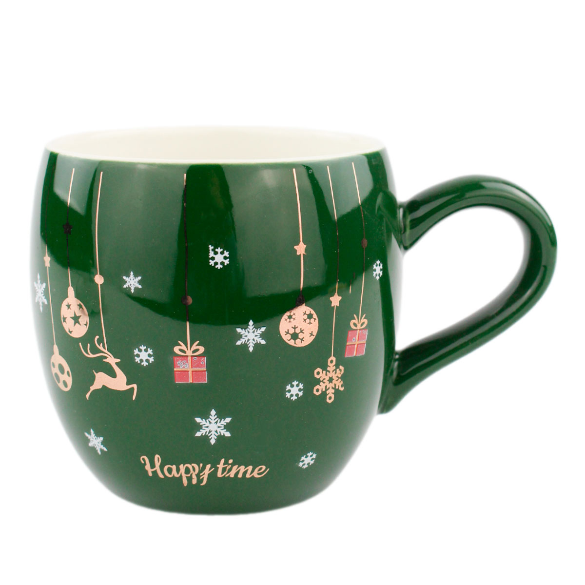 Кружка HTND8 подарочная "Крутой Новый год" зеленая 400мл, с ложкой