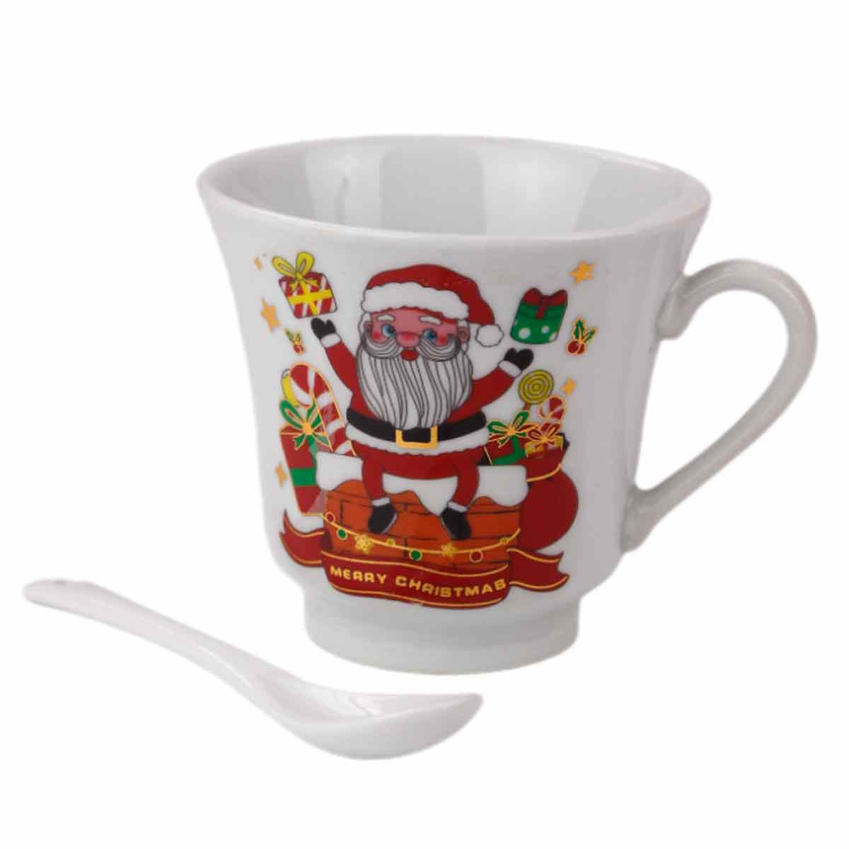 Кружка 230мл HTH047 подарочная в ассорт., с ложкой НГ, керамика
