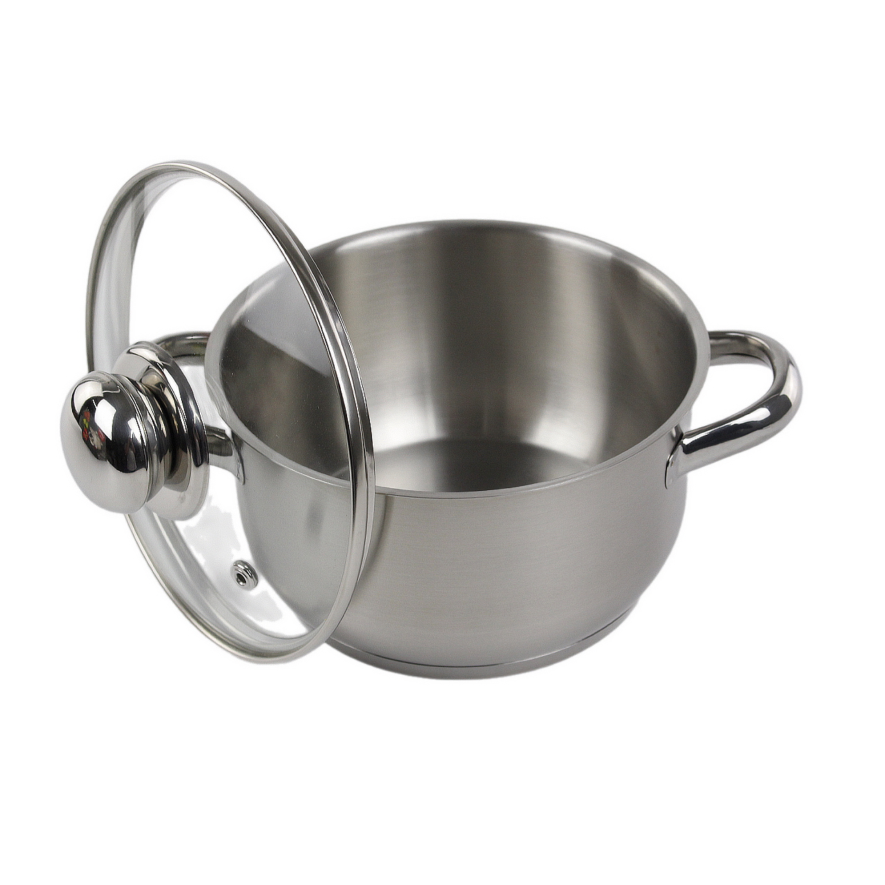 Цельнотянутый корпус из стали AISI 304L не подвержен коррозии, а утолщённое дно 4,7 мм равномерно распределяет тепло, предотвращая пригорание. Матовая полировка делает кастрюлю менее маркой и облегчает уход. Стеклянная крышка с отверстием для выхода пара позволяет контролировать процесс без лишнего открытия.