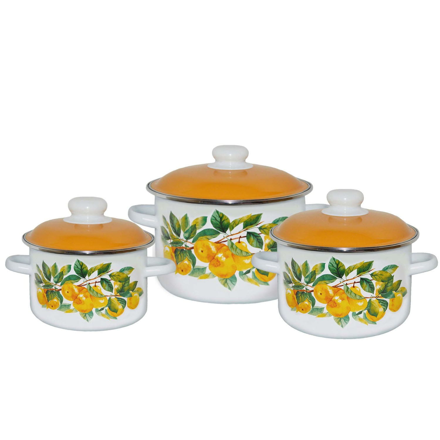 Наб.посуды эмал 1С144 Яблоки-груша 3пр.(к.1.5;3;4.5л)