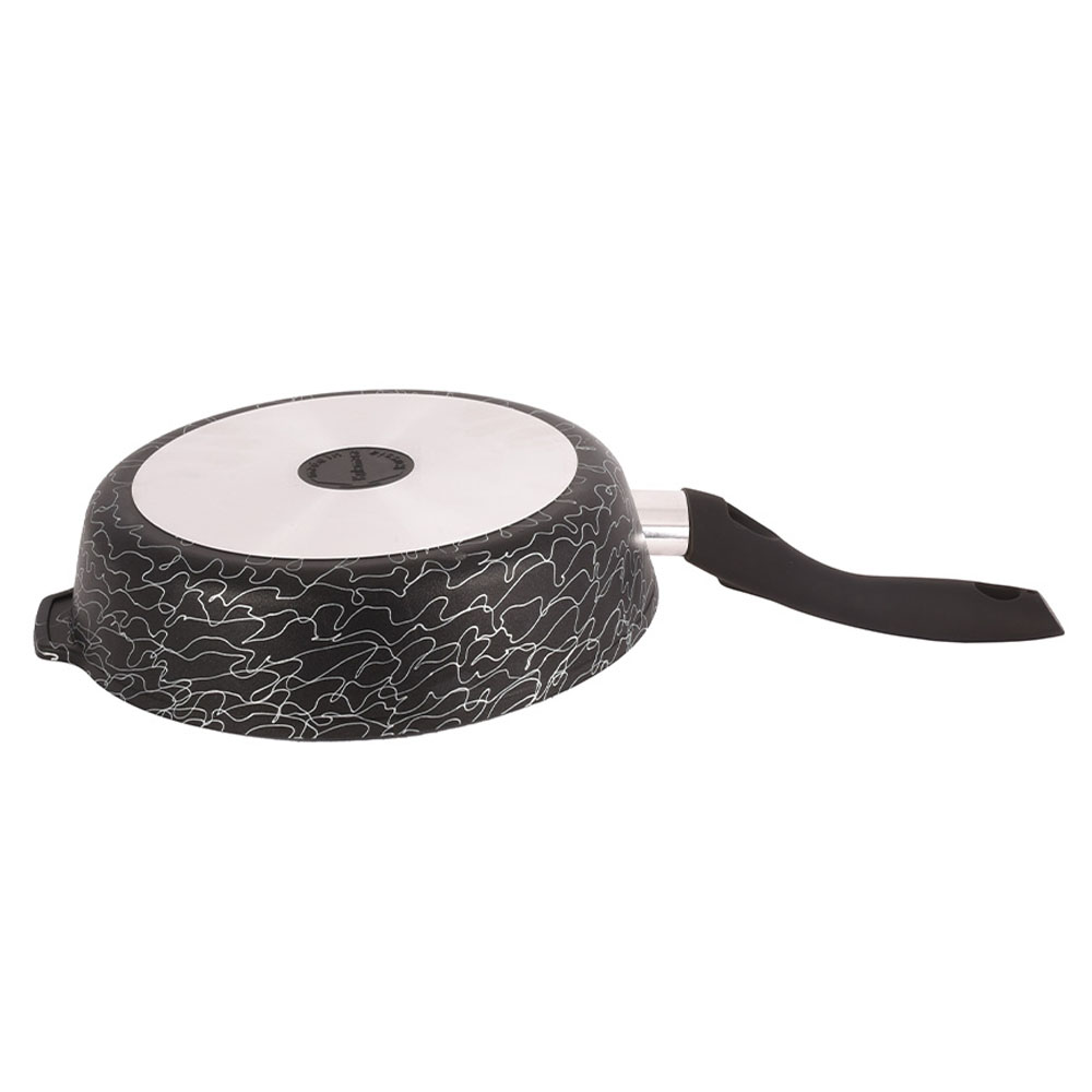 Сковорода Kukmara "Грация" 24 см в расцветке чёрный/серебро — это глубокая, удобная в использовании модель для повседневной кухни. Литой алюминиевый корпус хорошо удерживает и распределяет тепло, а антипригарное покрытие надёжно защищает пищу от пригорания. Благодаря высокой форме сковорода отлично подходит не только для жарки, но и для тушения.Элегантный внешний вид и удобная фиксированная ручка делают её не только практичным, но и эстетичным выбором. Можно мыть в посудомоечной машине.