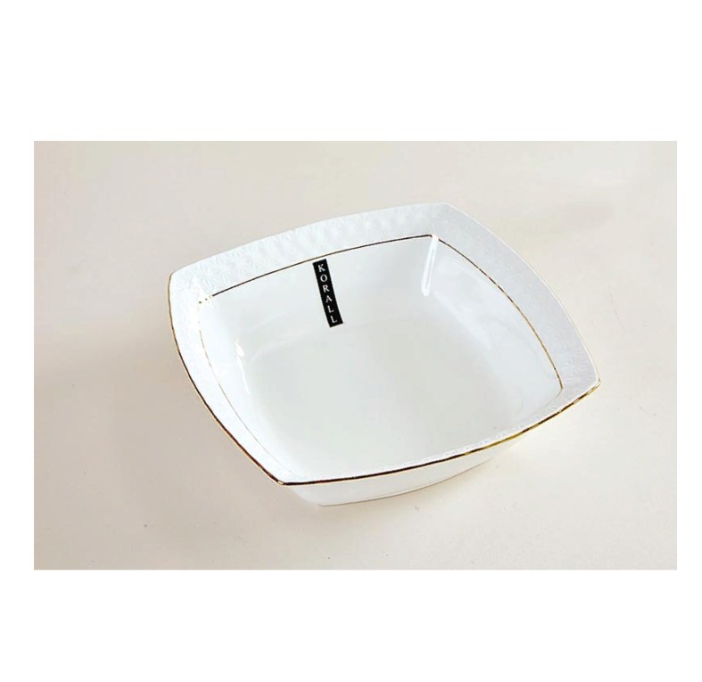 Салатник фарфор Коралл "Снежная королева" СS011615-A, квадрат 150 мм, 570 мл, золотая кайма, белый