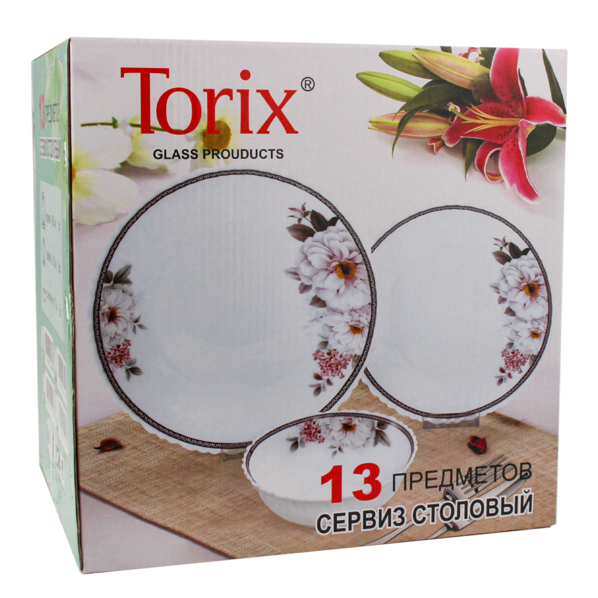Сервиз столовый стеклокерам. Torix "Сакура" NH13CT/12150, 13 пр.(тарелка: 21см-6шт,26см-1шт, салатник 17см-6шт), белый с декором
